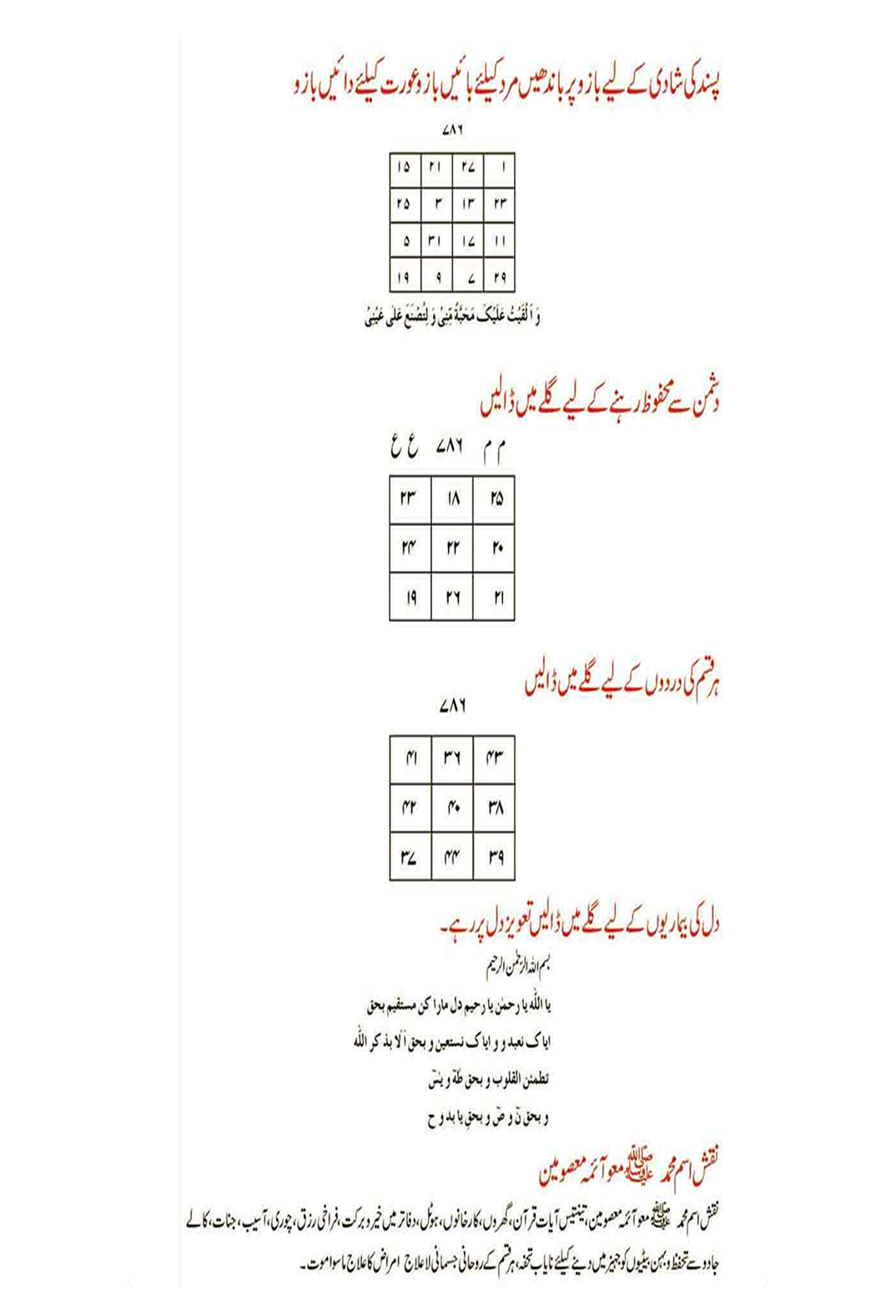 The people who have difficulty in accomplishing their business tasks should drink the water including the following amulet for 21 days. Insha ALLAH the lord will bestow his blessings.